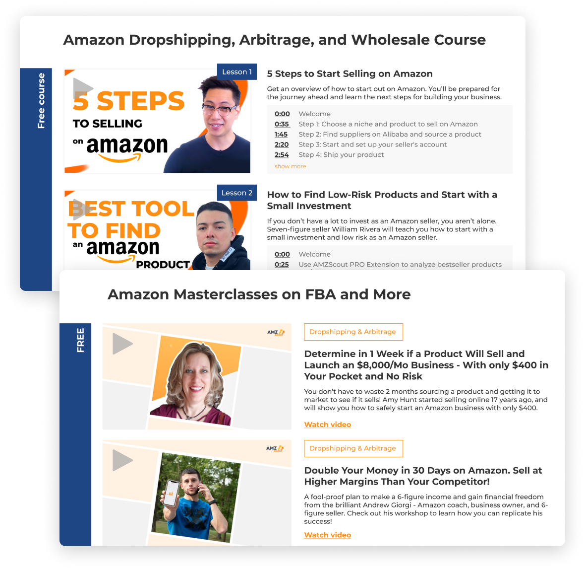 AMZScout Seller's CoursesComprehensive and actionable information on how to start selling profitable products on Amazon in less than three months, without the need for your own brand.