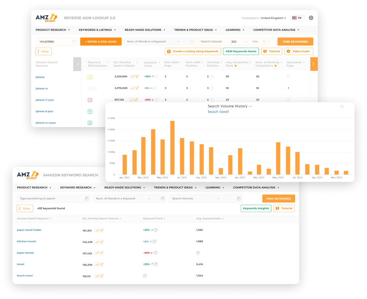 Amazon Keyword Search & Product Keywords Lookup 2.0Enhance your Amazon listing by discovering thousands of effective keywords for your product or obtaining them from successful competitors' pages using the ASIN. Watch a 2-minute guide