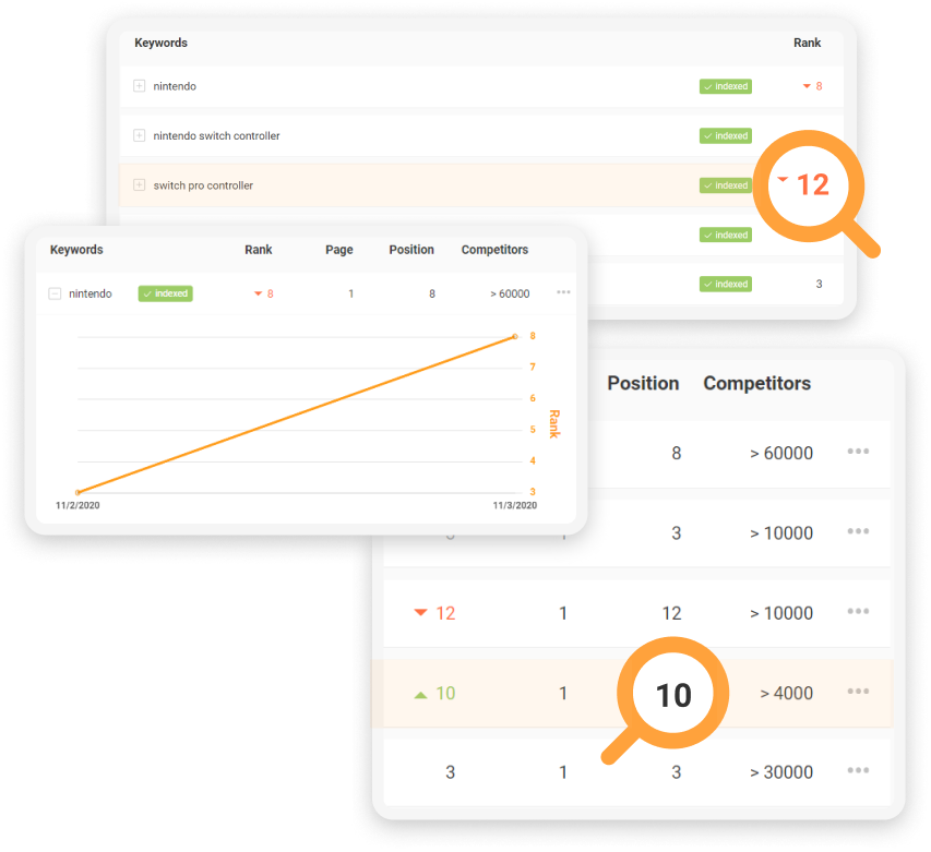 Track Your Rankings: See where each product ranks for your chosen search terms